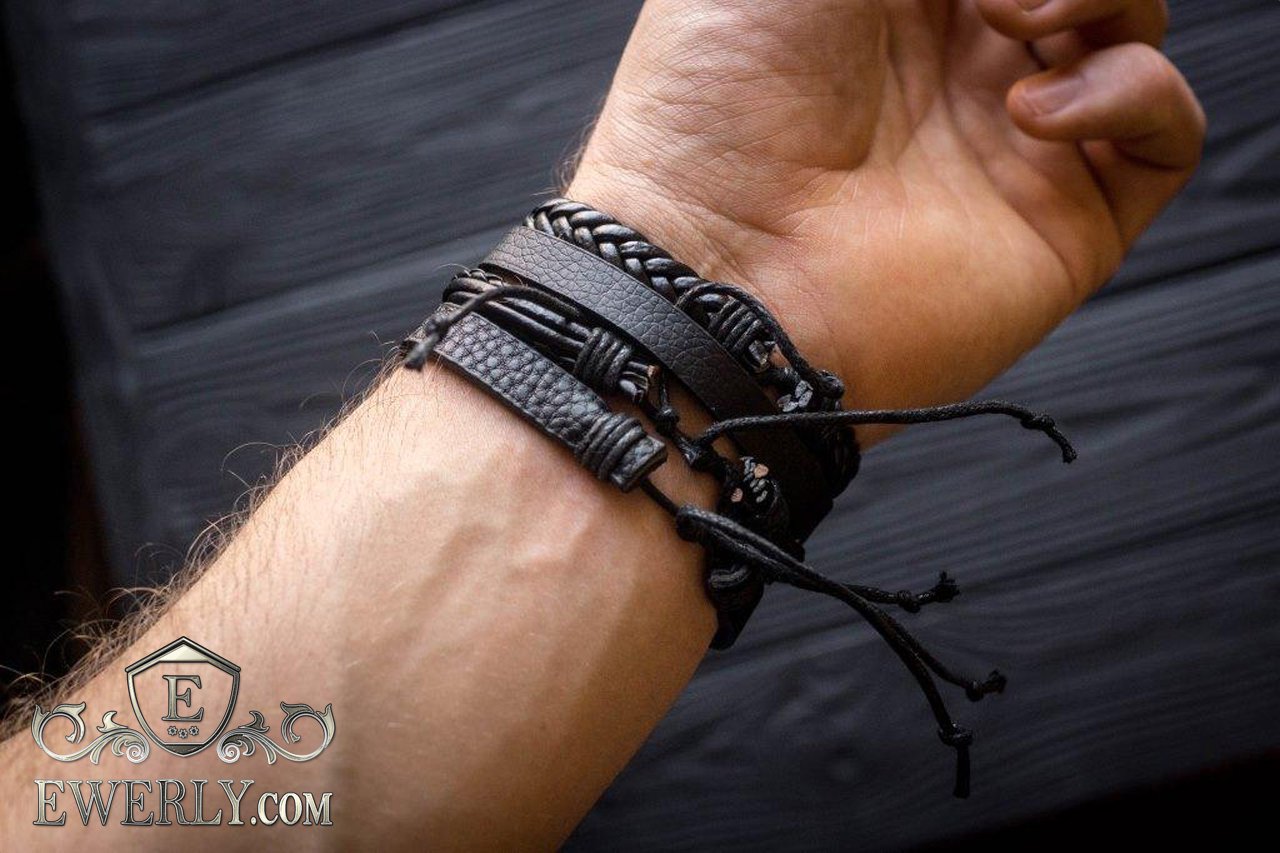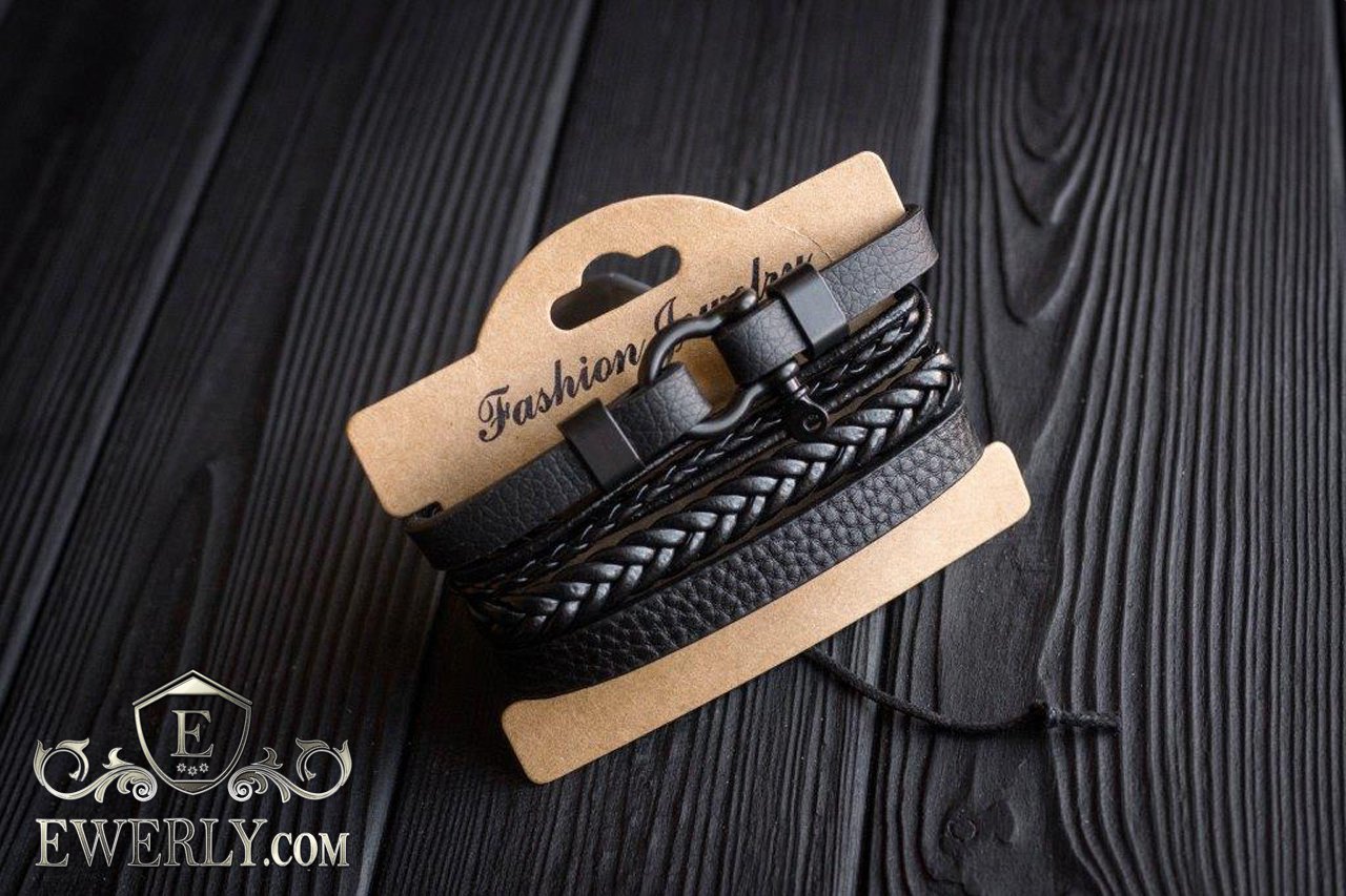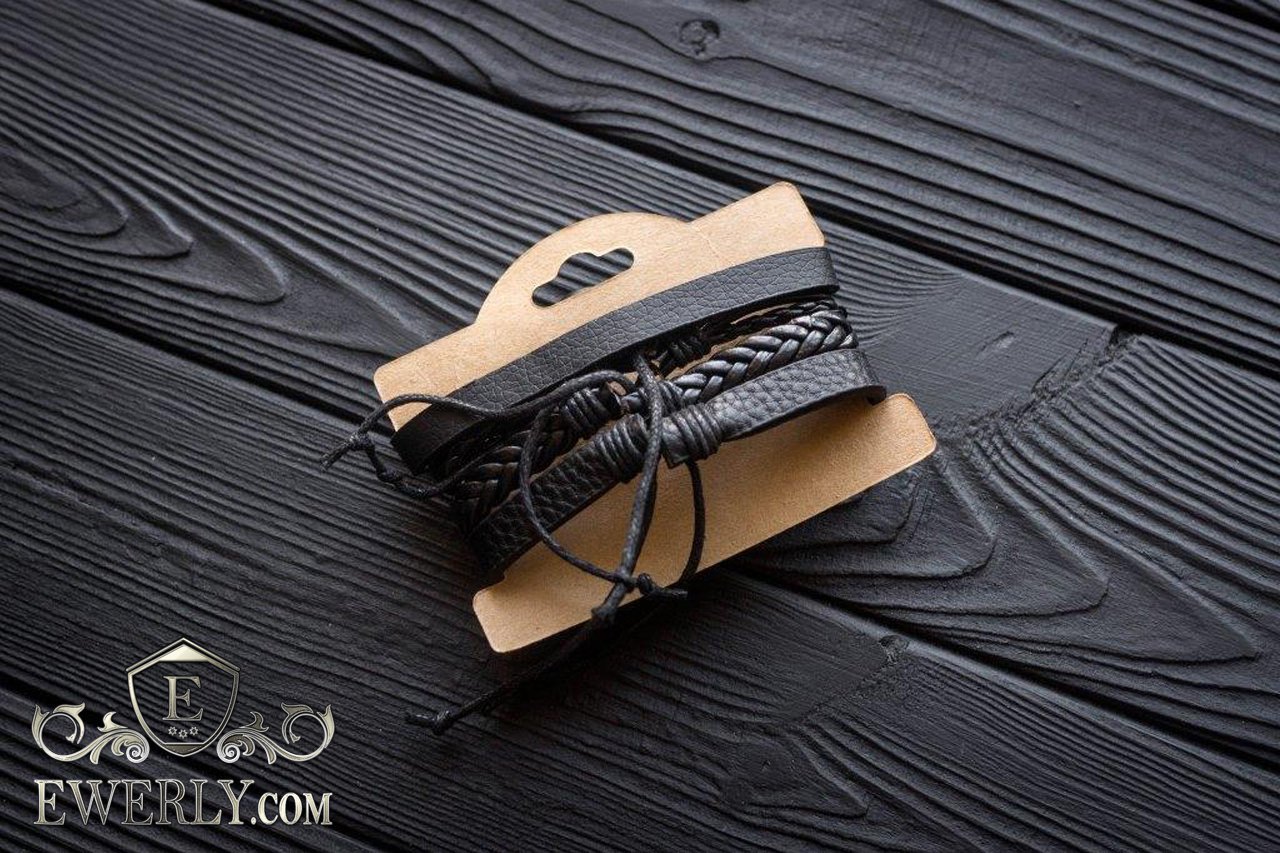 Комплект мужских браслетов из чёрной кожи 124010RQ