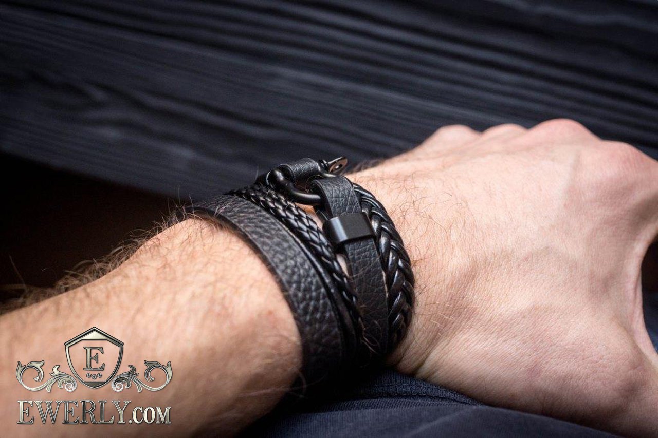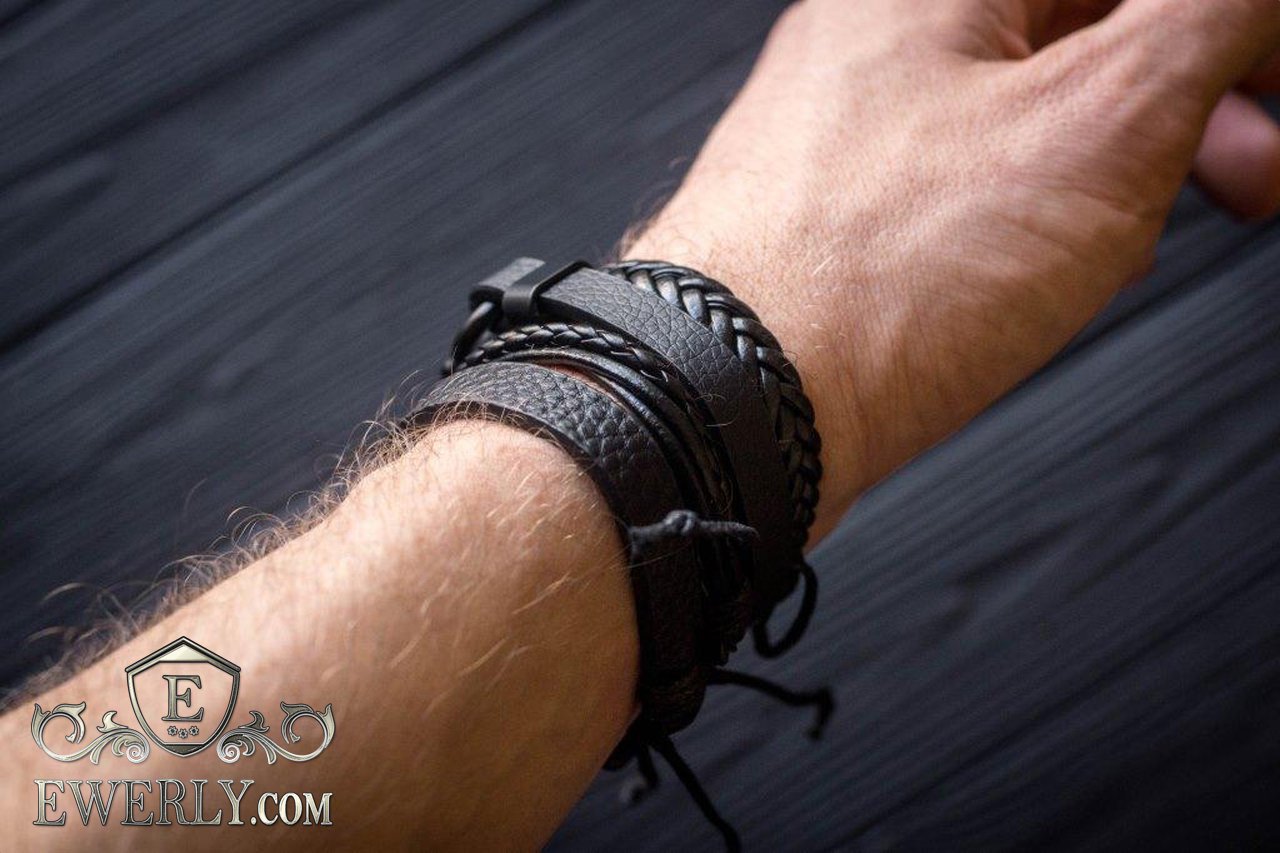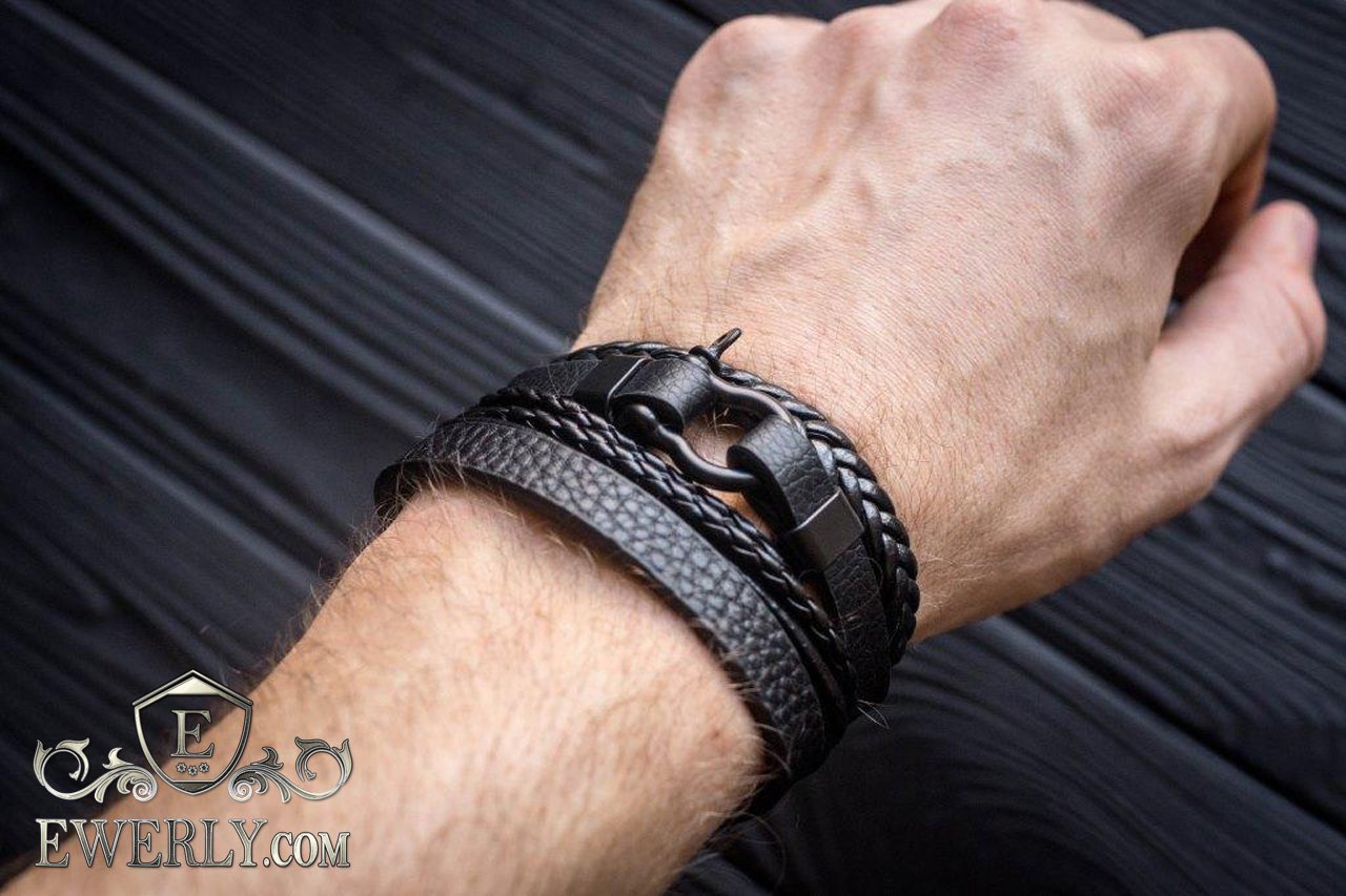 Комплект мужских браслетов из чёрной кожи 124010RQ