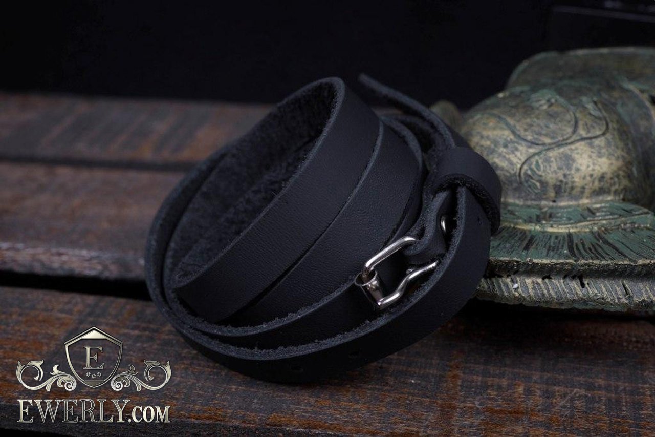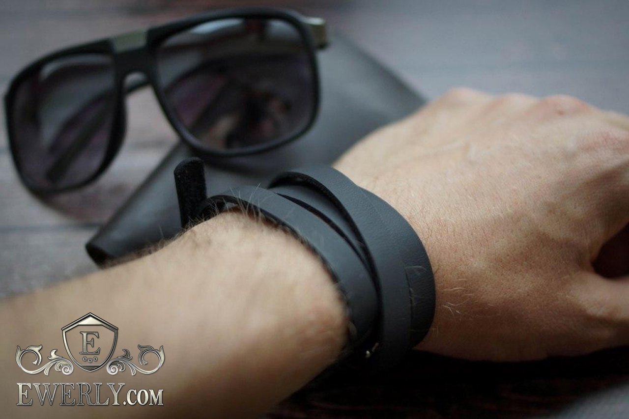 Браслет кожаный 4 вит. черный для мужчины 124005FS
