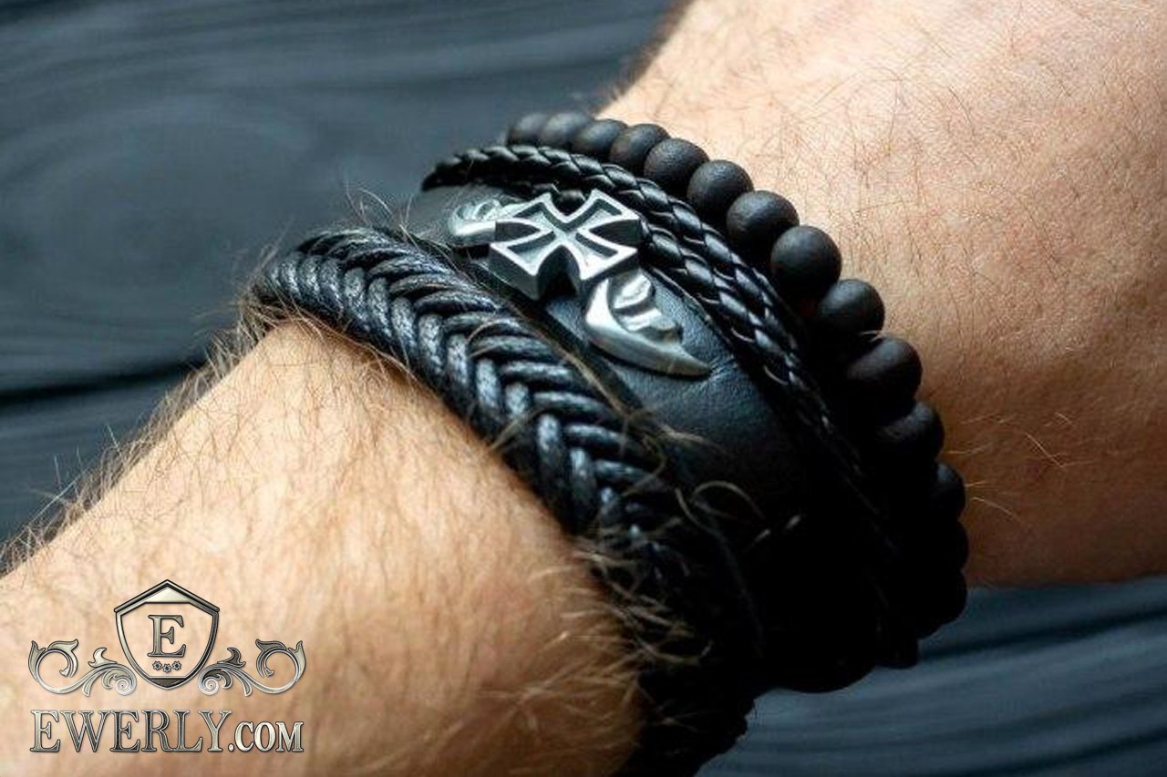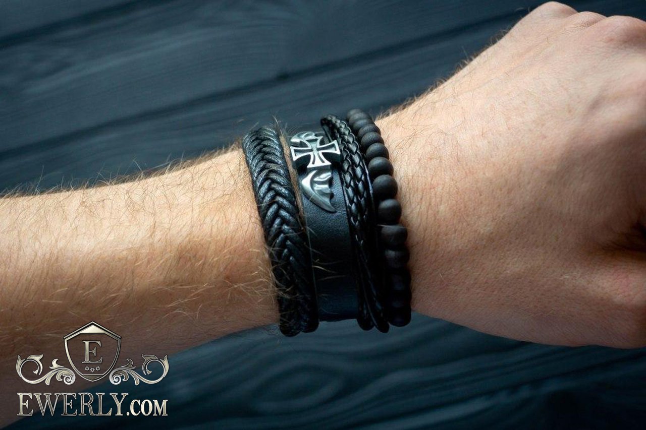 Браслет из кожи мужской (комплект на руку) 124015PT