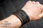 Браслет кожаный мужской из чёрной кожи 124011WR