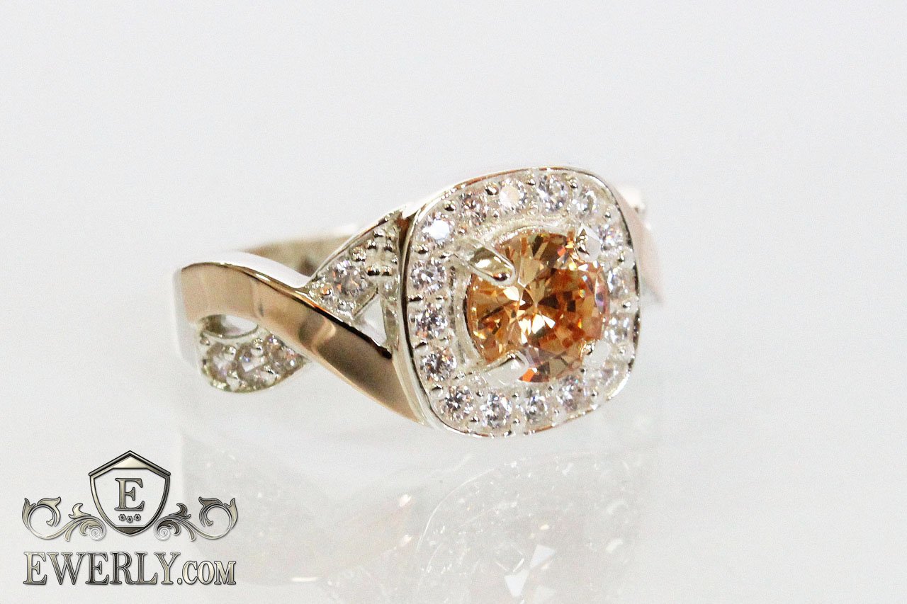 Кольцо из серебра для женщины (925 проба) с золотыми вставками 375 пробы и камнем (фианит цвета-шампань).