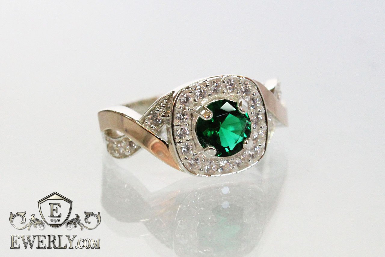 Кольцо из серебра для женщины (925 проба) с золотыми вставками 375 пробы и зелёным камнем.