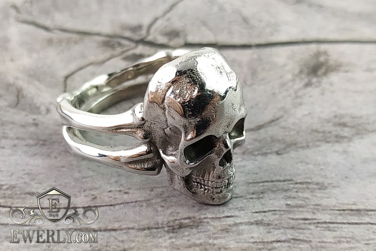 Женское серебряное кольцо с черепом без камней. Также можно купить это кольцо из серебра с родированием или же без покрытия.