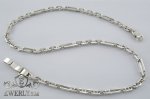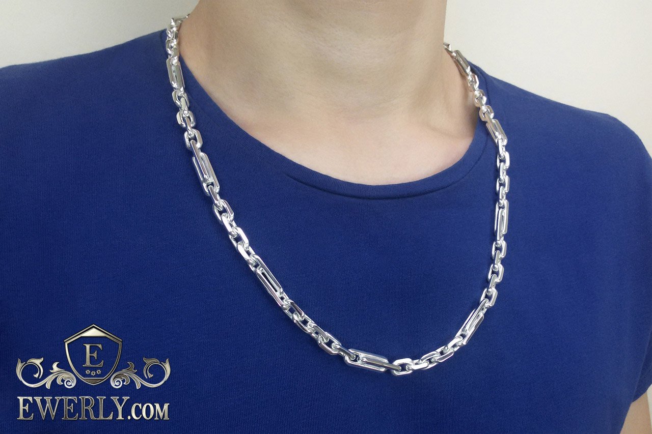 Полновесная цепочка. Серебряная цепь из плетения «Комбинированный якорь» весом около 100 грамм наравне с обычным якорным плетением при такой же массе имеют очень высокую прочность за счёт толстой проволоки в основании, из которой собственно и плетутся цепи. В отличии от обычной якорной комбинированный якорь имеет продолговатые звенья попарно спаянные между собой, которые чередуются со звеньями стандартной длины, что хорошо видно на фото.