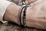 Комплект мужских браслетов из камня, кожи и стали 123056DC