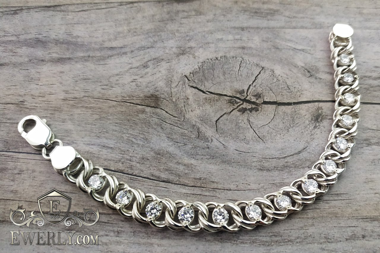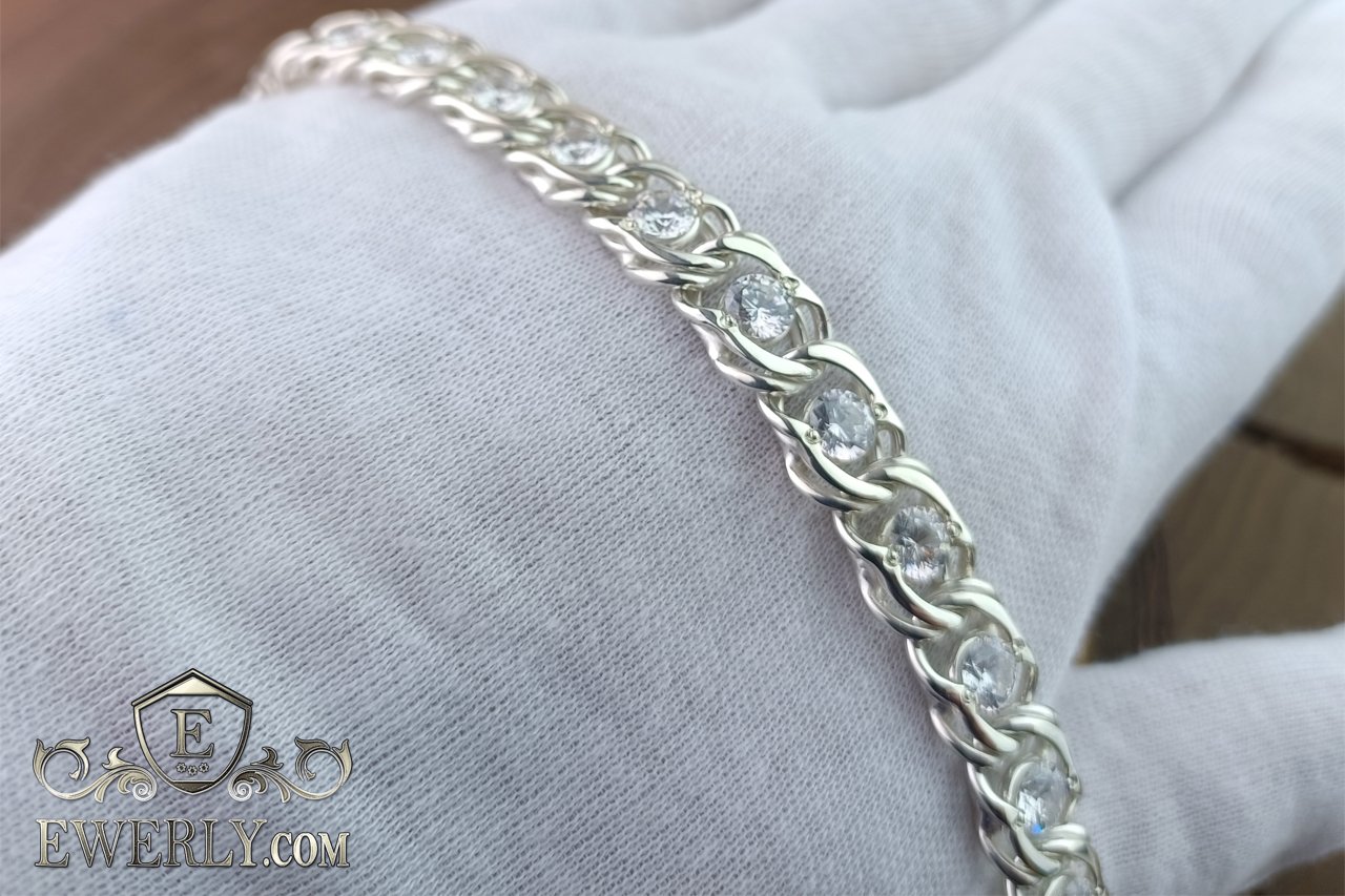 Браслет Арабский бисмарк из серебра с белыми фианитами