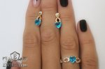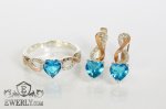 Набор: женские серебряные серёжки и кольцо из серебра 925 пробы с седцем и с золотыми вставками 375 пробы, голубой камень - фианит голубого цвета.