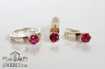 Женские серебряные серьги и кольцом с золотом и камнями цвета-рубин