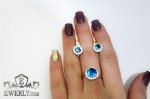Женские серебряные кольцо и серьги с золотом и голубыми камнями
