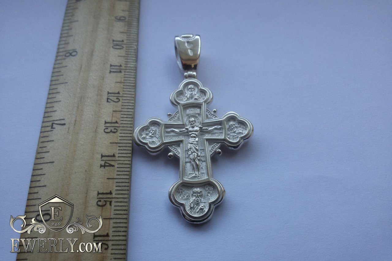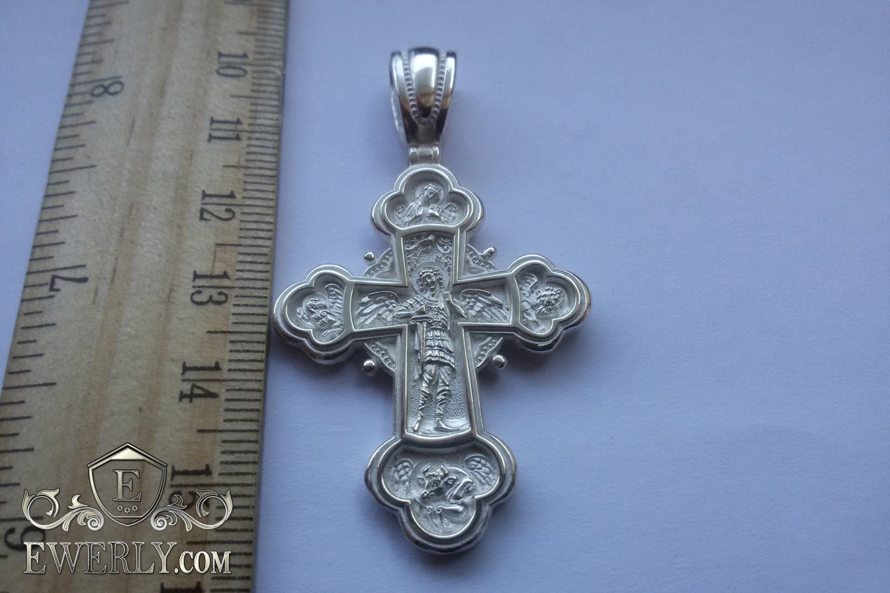 Изображено на фото: Распятие Христово с предстоящими. Архангел Михаил. Православный крест.Длина: 4.1 см