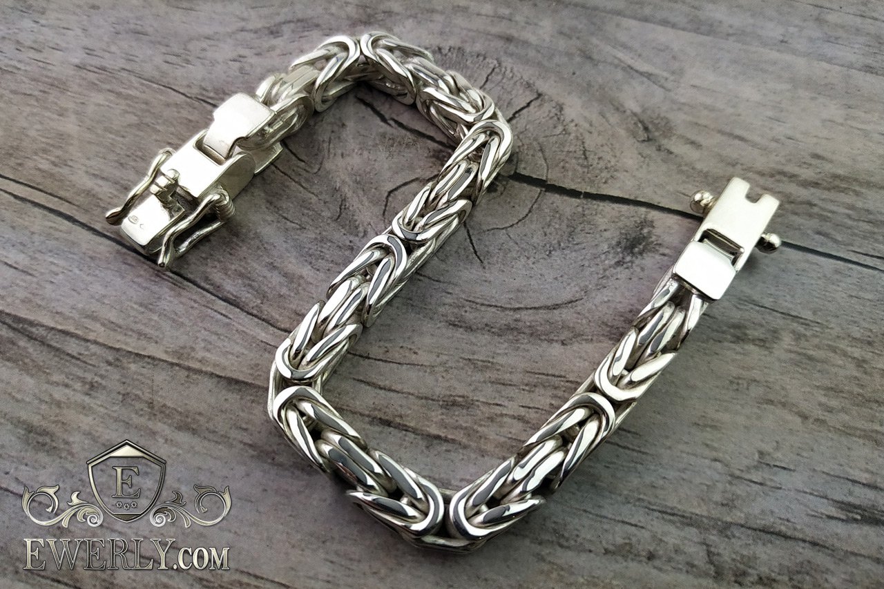 Мужской браслет византийский из серебра - плетение Византия на руку
