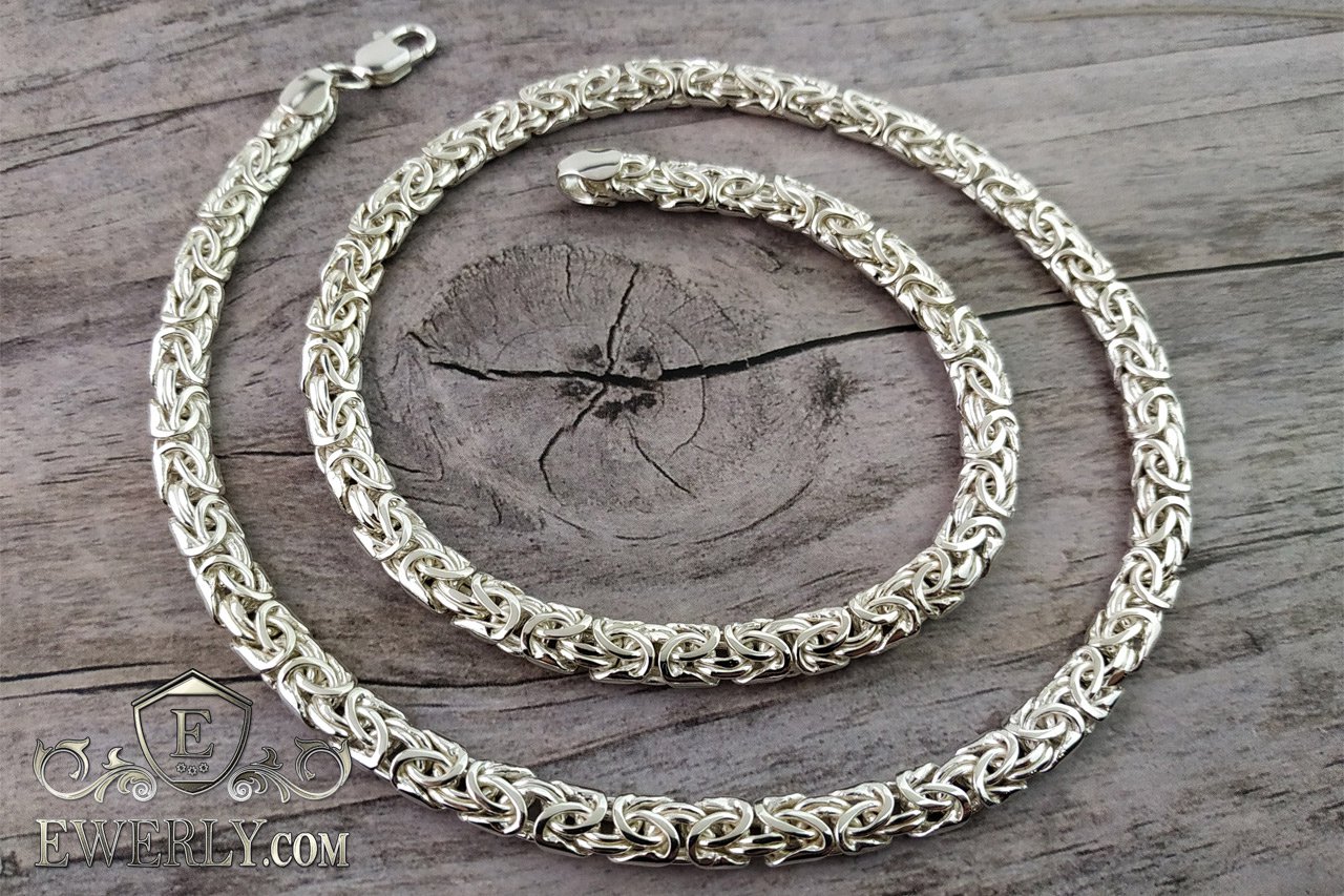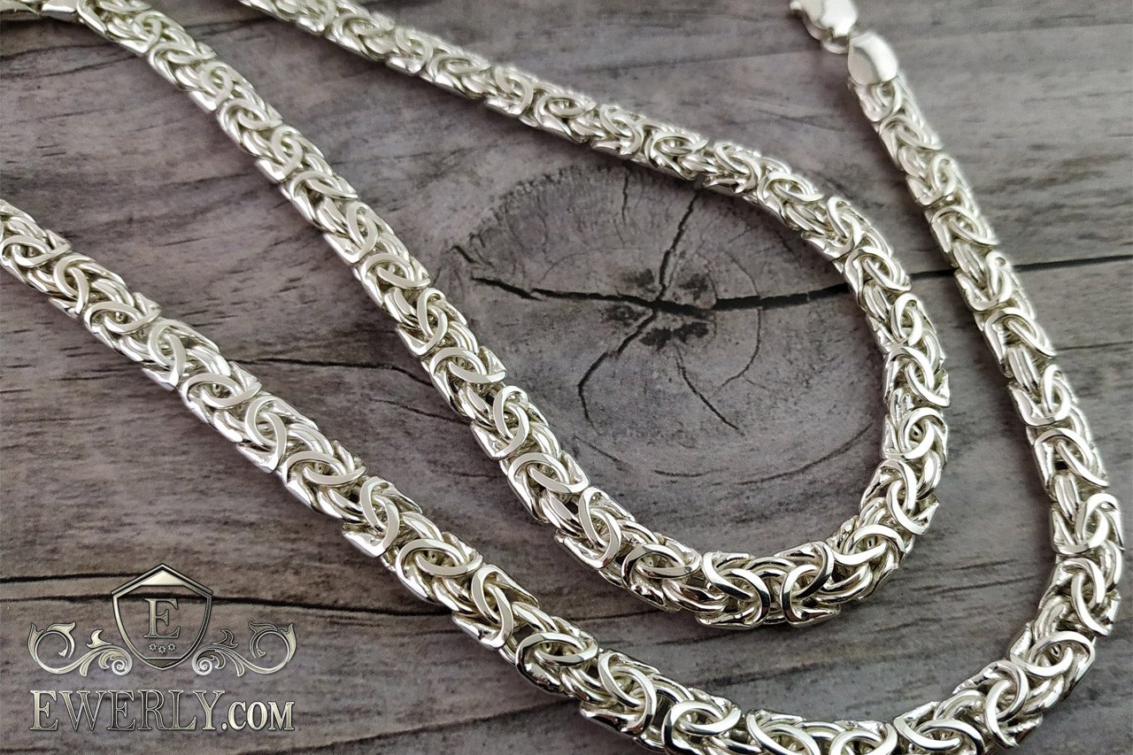 Полновесная серебряная цепочка на шею. Данное плетение достаточно трудоёмкое в исполнении, и большинство ювелиров не обладают достаточным уровнем навыков в изготовлении, чтобы достичь высокого качества украшений, не говоря уже о том, чтобы просто изготовить. На текущий момент качество наших работ из этого плетения существенно превосходит большинство других производителей.