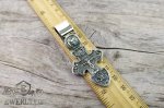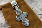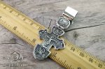 Изображено на кресте: Распятие Христово с предстоящими. Святая Троица. Архангел Михаил. Святые Воины. Тихвинская икона Божией Матери. Православный крест.Высота: 8 мм