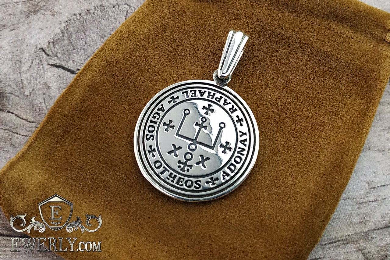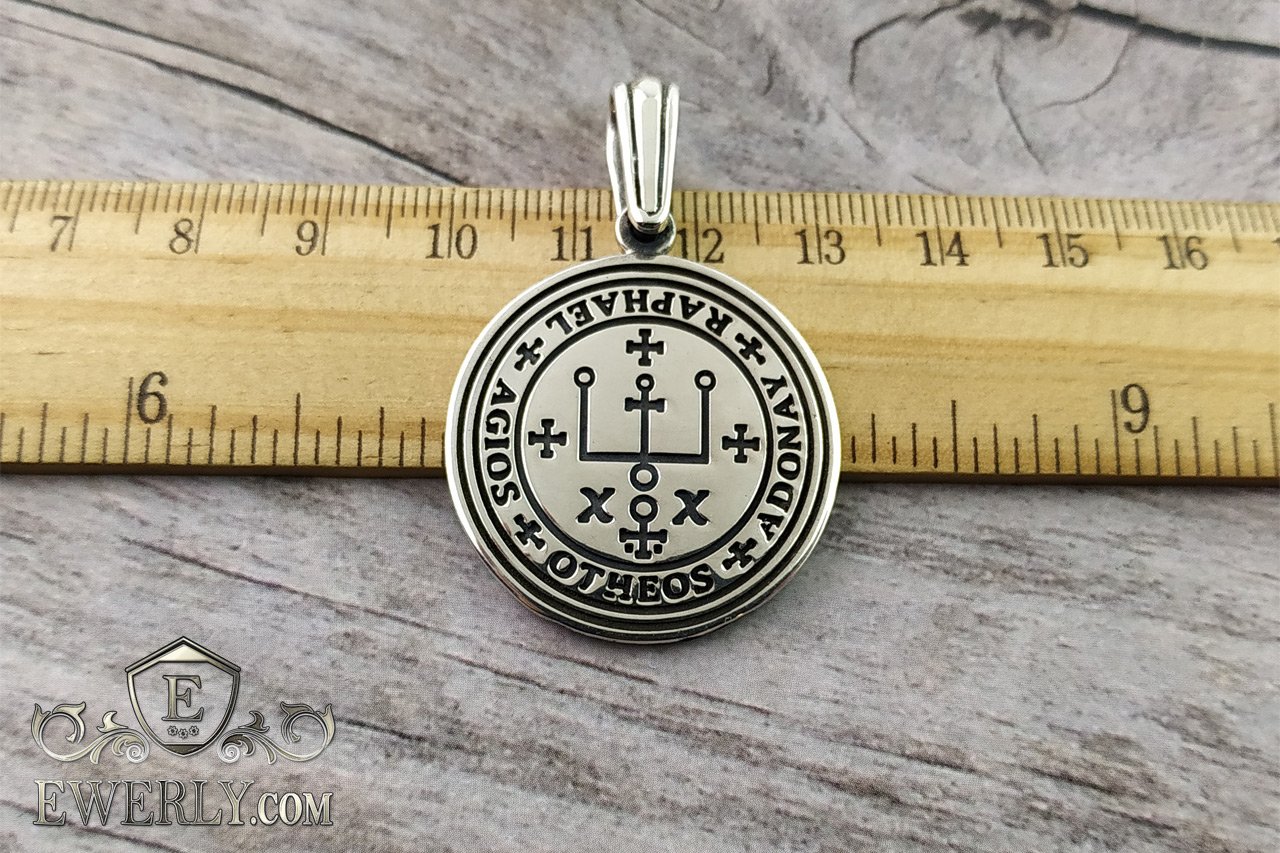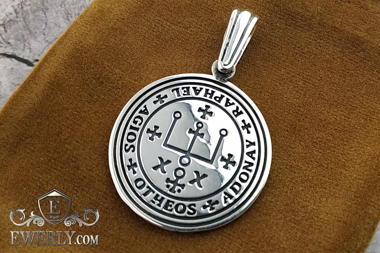 Подвеска-кулон из серебра "Пентакль архангела Рафаила"