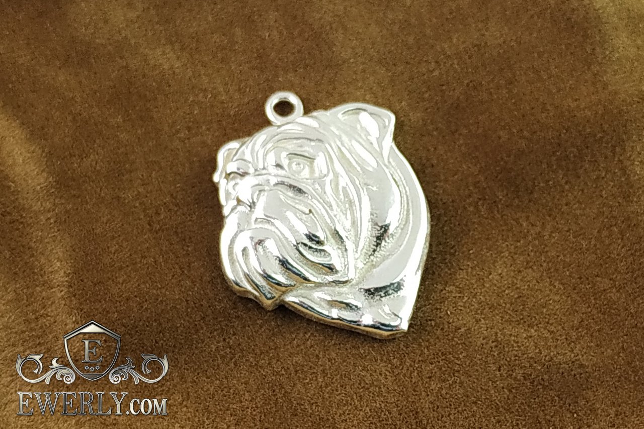 Серебряная подвеска-кулон в виде собаки (Бульдог)