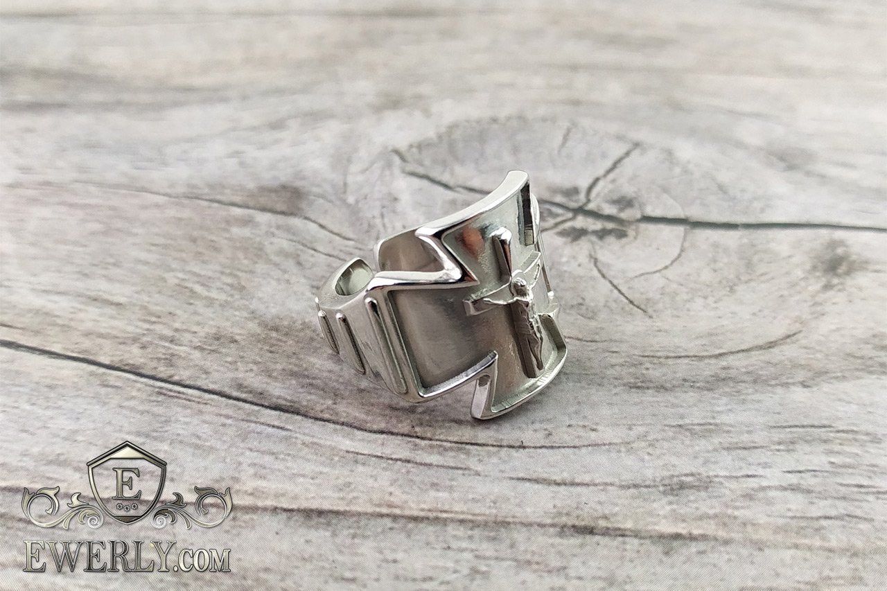 Православный перстень мужской из серебра с Иисусом - серебряная печатка