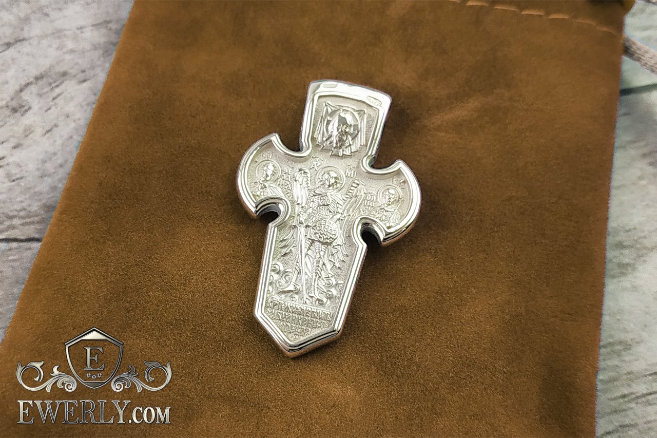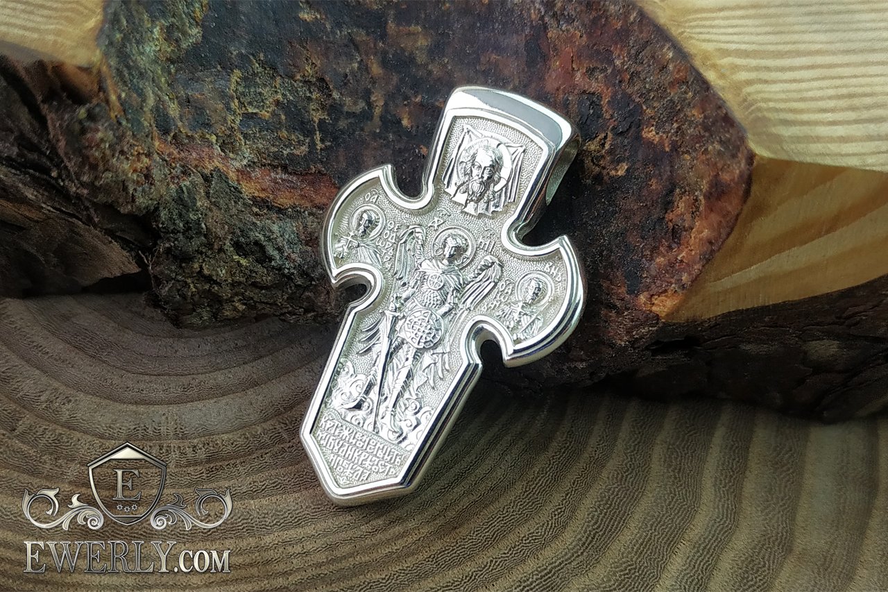 Изображено на фото креста: Распятие Христово. Архангел Михаил.Высота: 5.5 мм