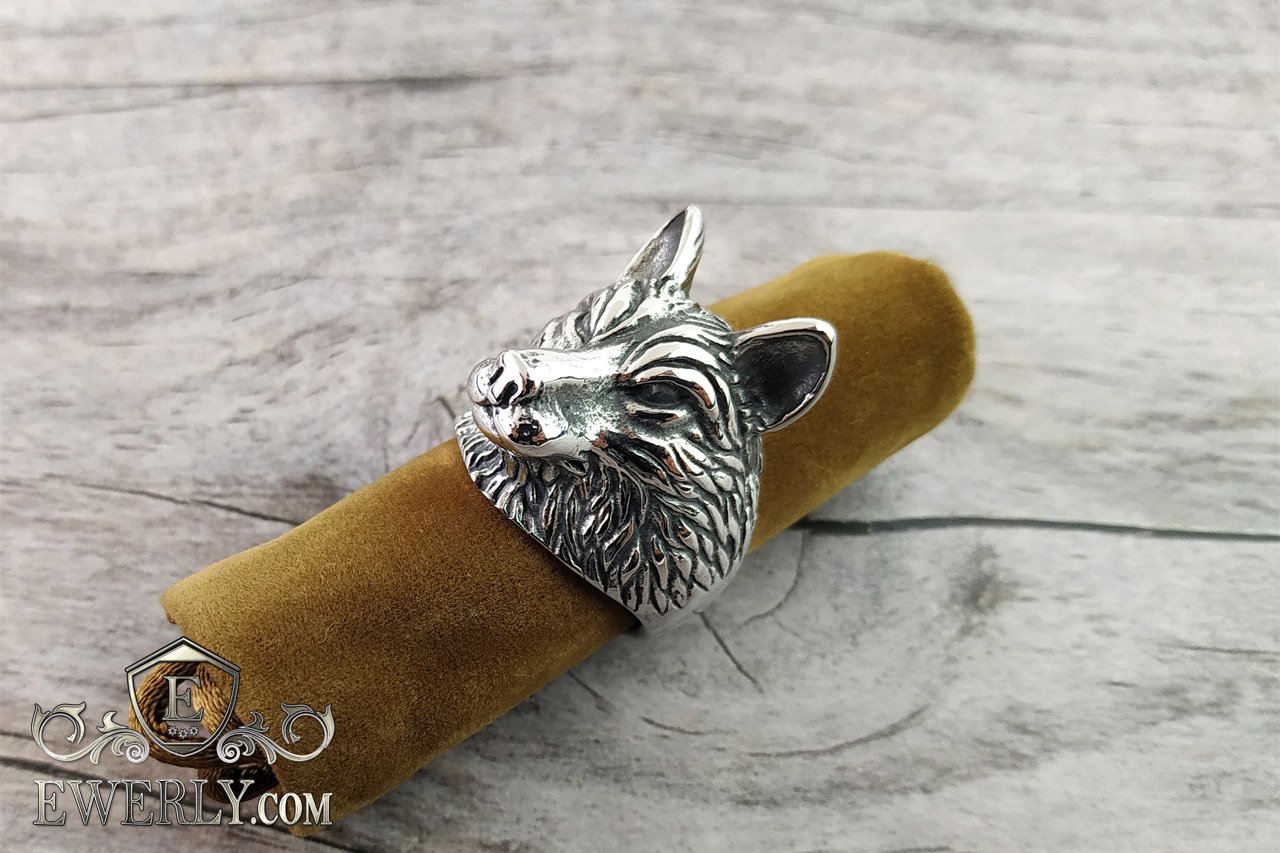 Предлагаем Вам один из вариантов мужского серебряного перстня с изображением волка.