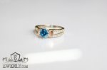 Женское Серебряное кольцо 925 пробы с золотыми вставками 375 пробы с камнем голубого цвета.