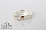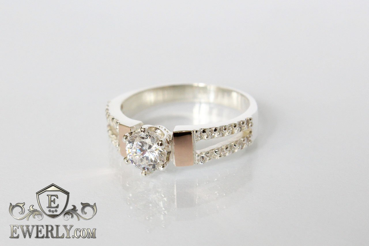 Женское Серебряное кольцо 925 пробы с золотыми вставками 375 пробы с белым камнем.