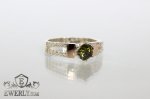 Серебряное кольцо с золотыми вставками и камнем (цвет - олива)