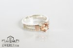 Серебряное кольцо с золотыми вставками и камнем (цвет - шампань)