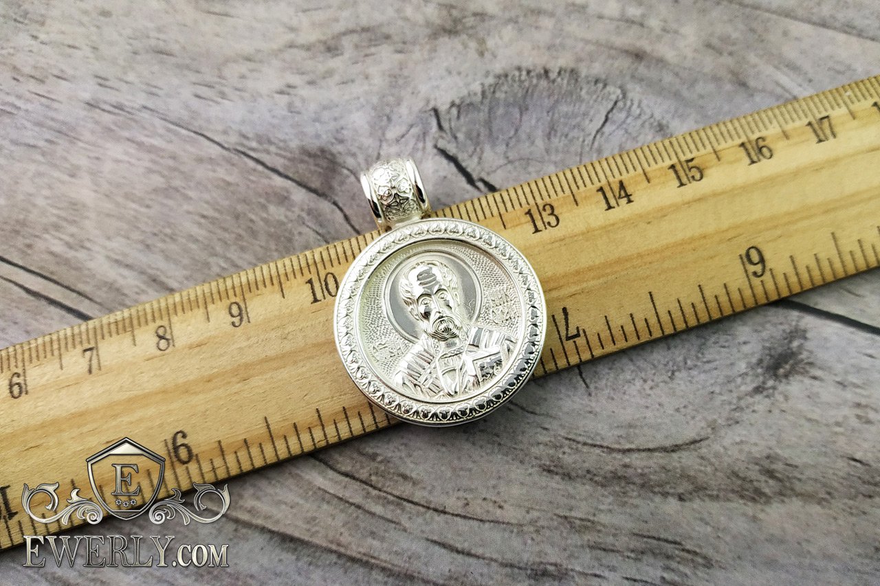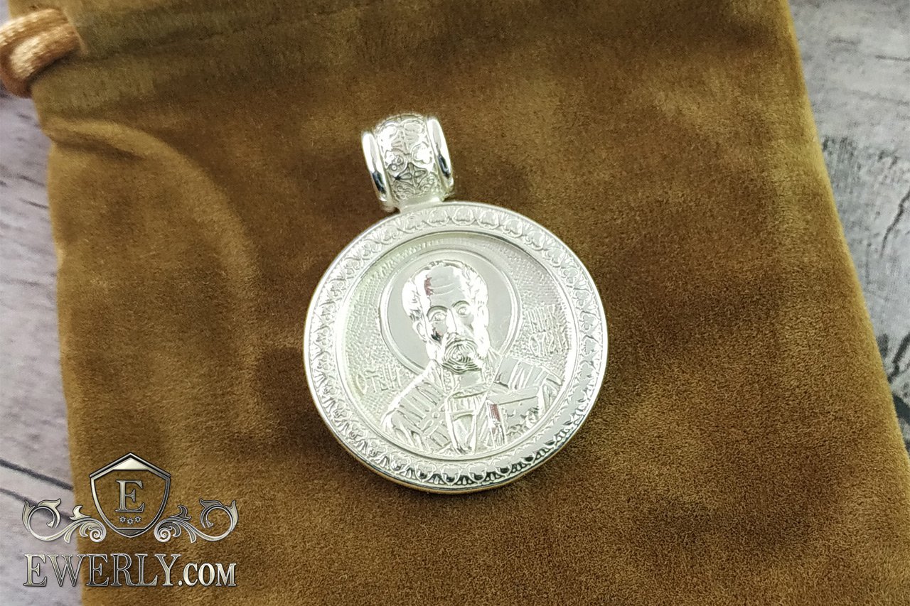 На фото изображена ладанка - подвеска "Святой Николай Чудотворец" из серебра 925 пробы. Ушко данной подвески может быть заменено на более крупное, для уточнения обращайтесь на любой из наших контактов.