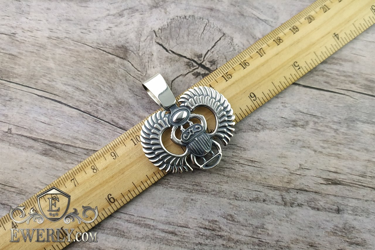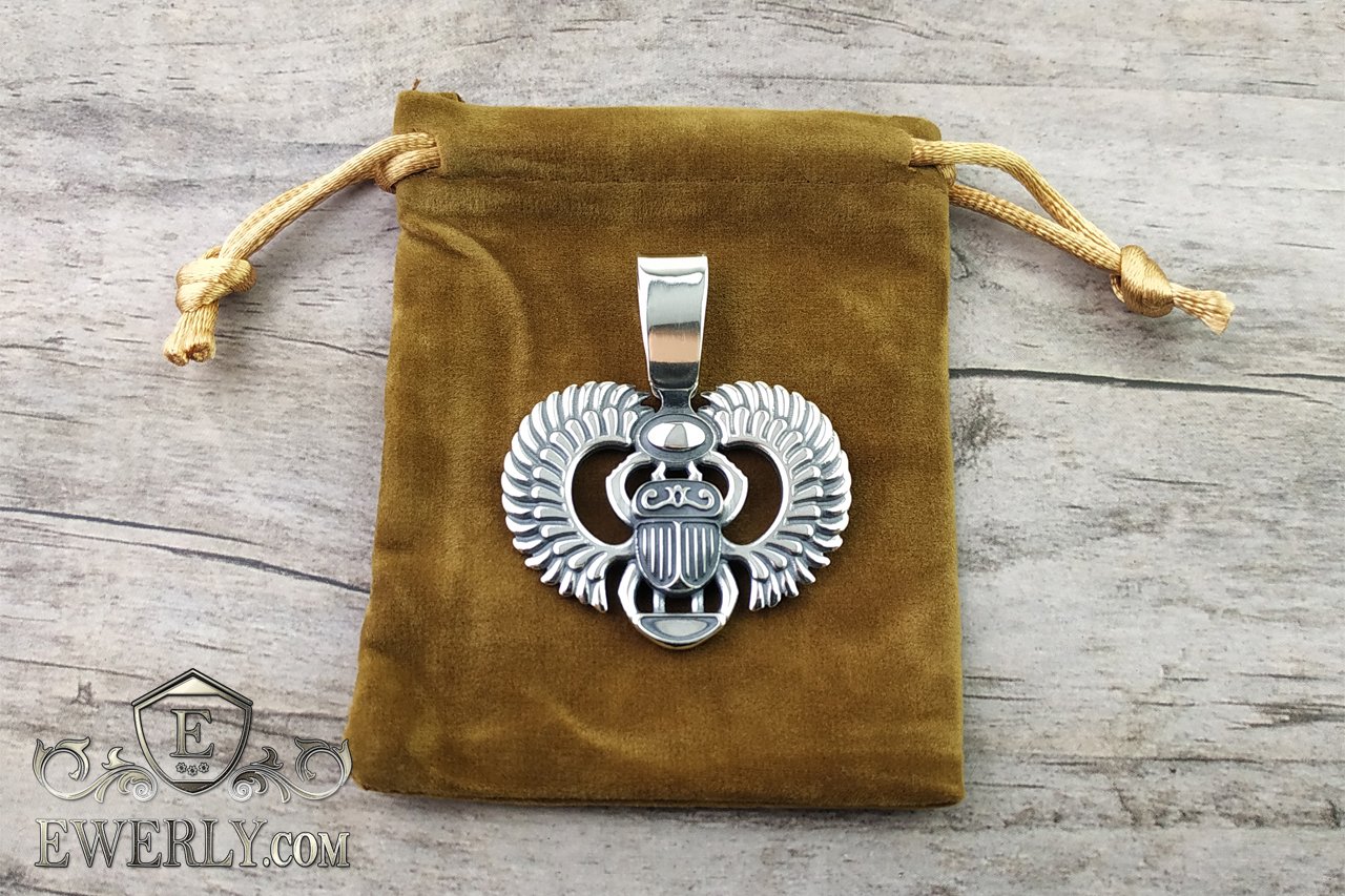 Подвеска - кулон «Жук скоробей» из серебра, амулет на шею