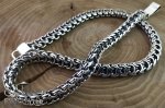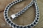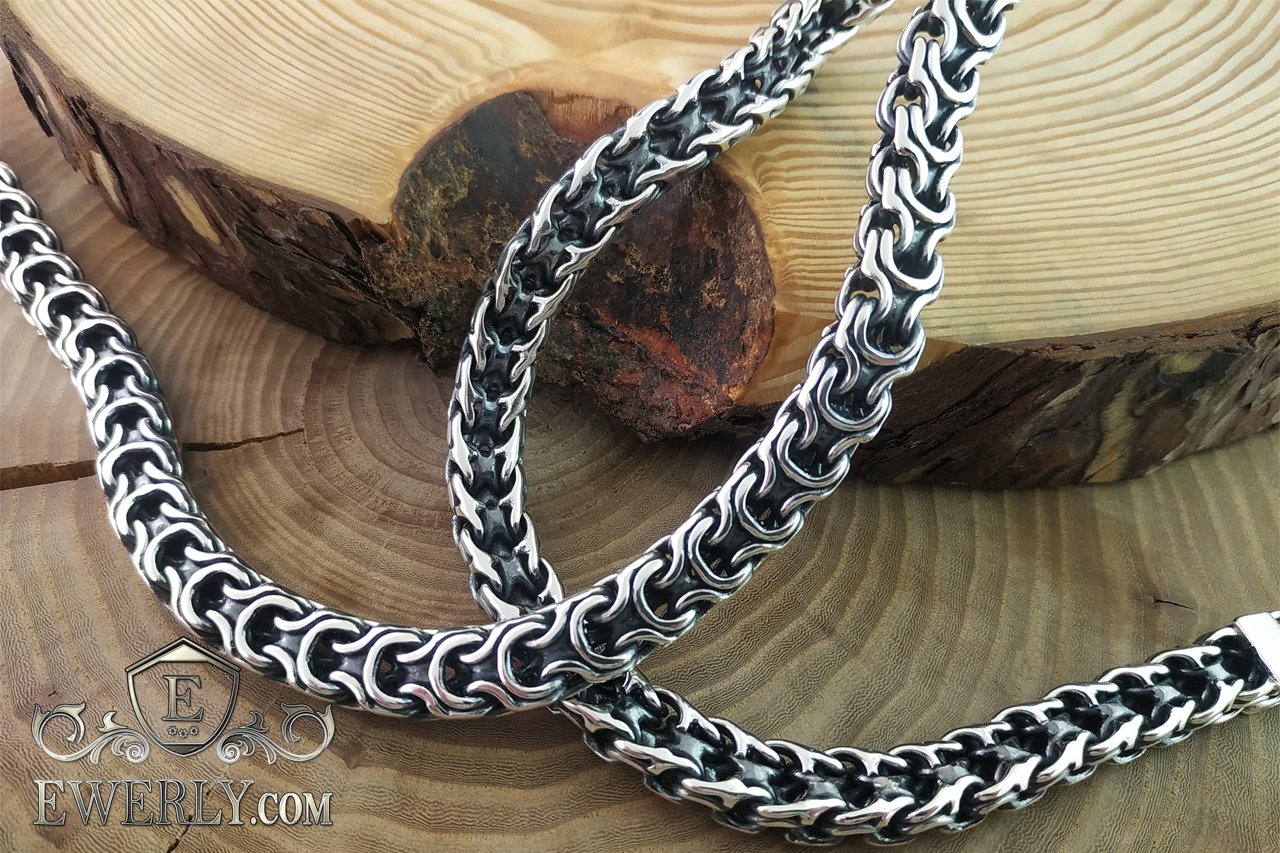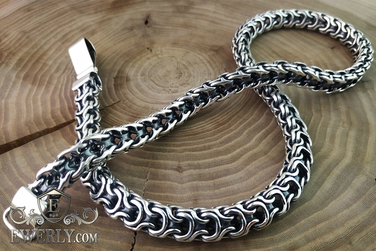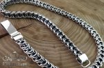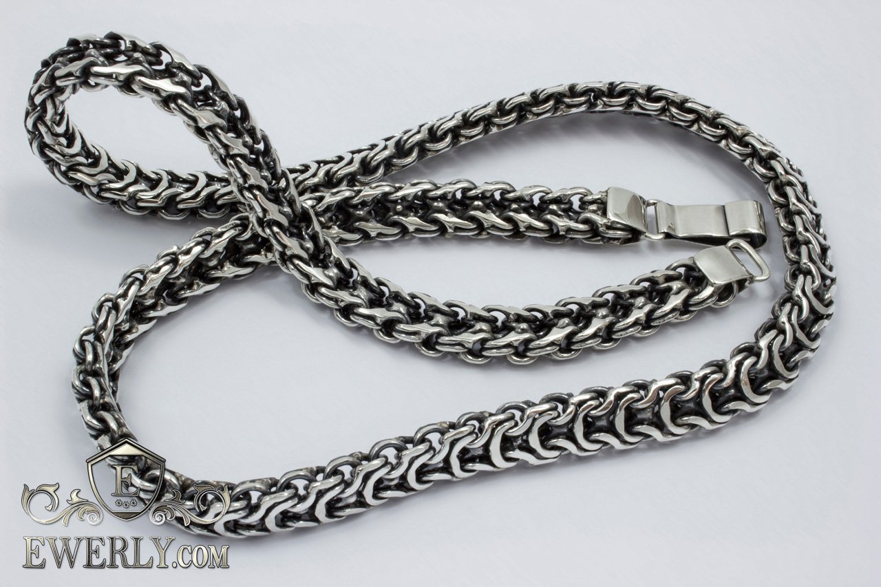 Фото серебряной цепочки (925 проба), изображённой на текущей странице, показывает как два разных плетения, каждое из которых уже само по себе является уникальным и неповторимым, отлично сочетаются в одном ювелирном изделии. С одной стороны цепочки ярко выражено редкое плетение «Рамзес», а с другой стороны - не менее редкое и эксклюзивное плетение «Двойной ручеёк».