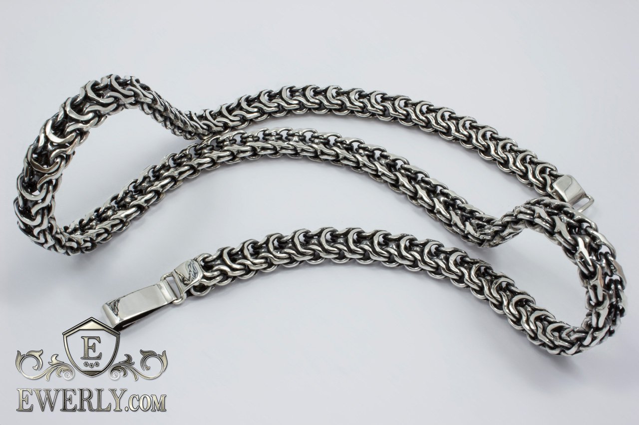 Мужская серебряная цепочка на шею, показанная на фото, достаточно толстая, если необходимые Вам параметры отличаются от указанных в описании, то Вы всегда и без всякого труда можете выбрать свои, нажав на соответствующую ссылку с надписью «Выбрать другие размеры», в том числе можно изменить замок и покрытие.