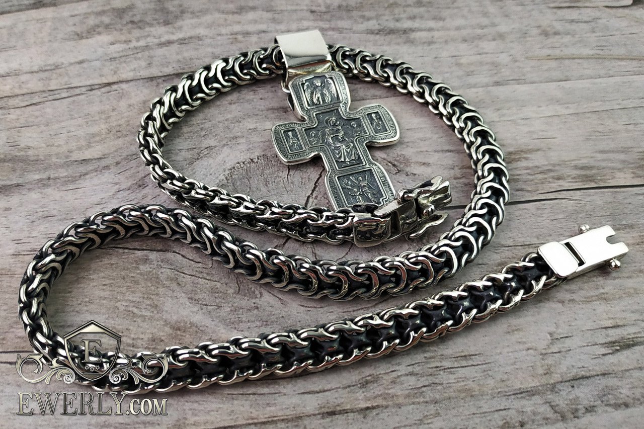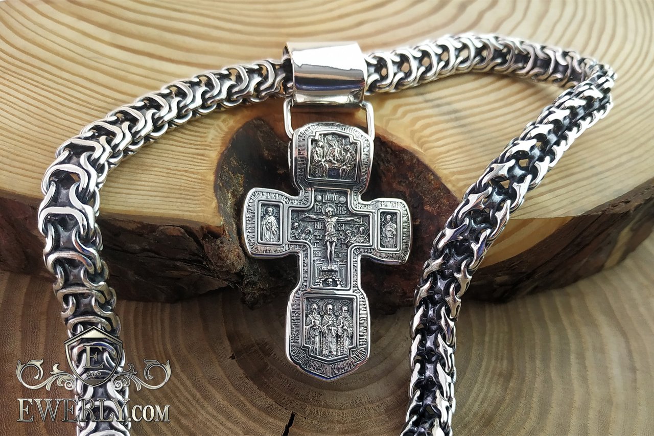 Мужская серебряная цепочка Фантом с большим православным крестом