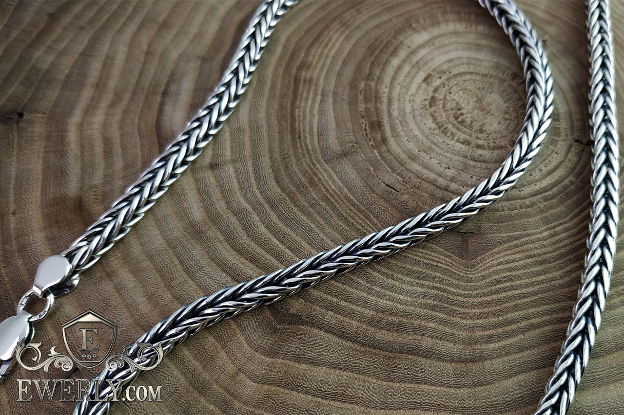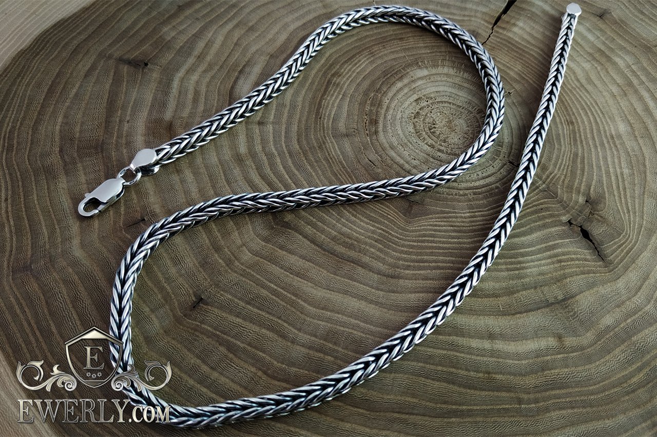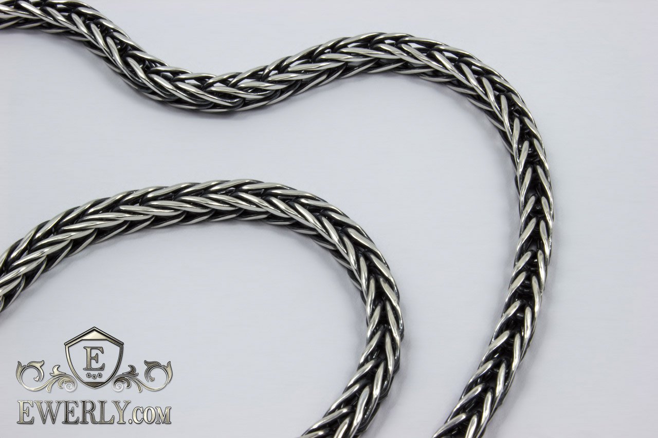 Плетение Колос - мужская серебряная цепочка с чернением