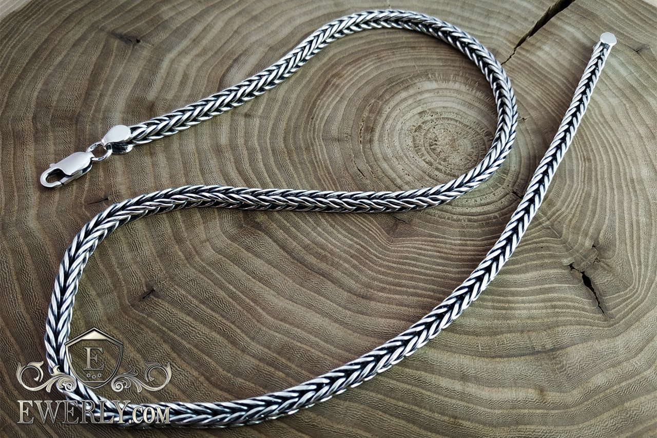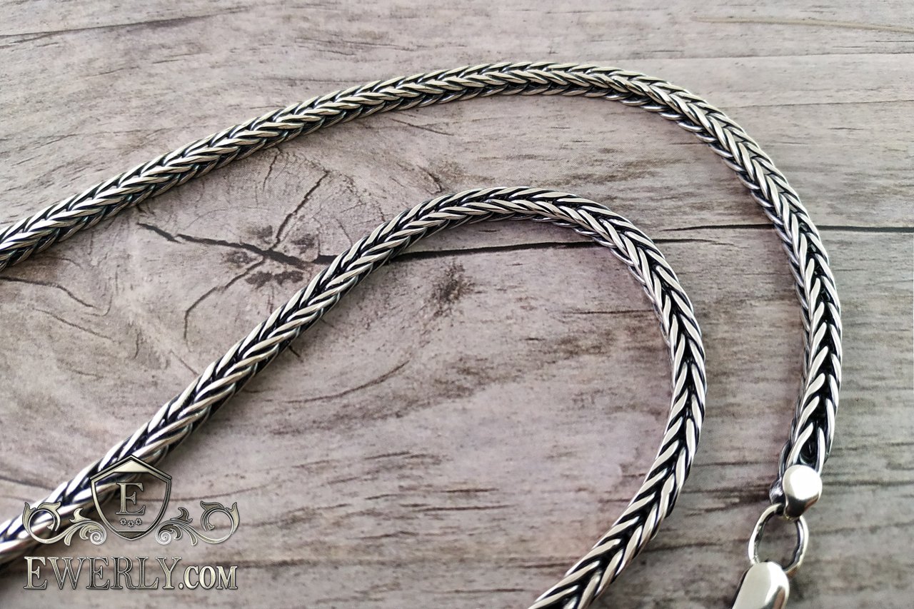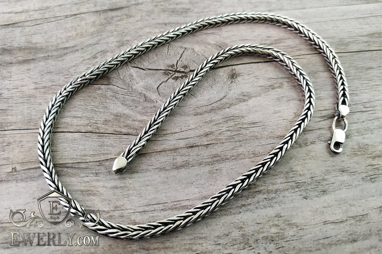 Плетение Колос - мужская серебряная цепочка с чернением