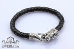 Мужской браслет - кожа с серебряным замком в виде дракона