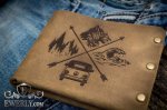 Полностью выполнен из натуральной кожи и металлических заклепок. Эксклюзивное изделие ручной работы, имеет эффект потёртости и лёгкой небрежности. Рисунок нанесён на кожу с помощью лазера (лазерная гравировка). Изготовлен в ограниченном выпуске.