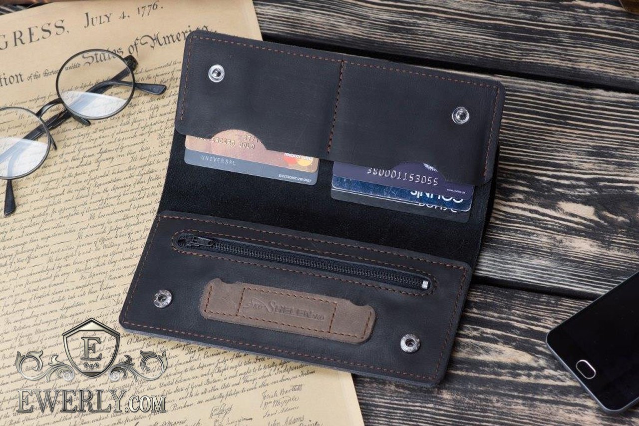 Очень удобная структура кошелька, имеется одно отделение на молнии, два основных больших раздела, которые отлично подойдут как для бумажных денег, так и для телефона. Вторых два отделения в развороте вмещают до 8-10 карт, или их можно также использовать под мелочь.