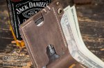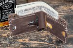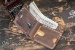 Имеет три отделения: два из них для банковских карт и визиток (вмещается в общем до 6 карт), а также большой карман для бумажных денег под купюры всех номиналов, в том числе самых крупных.