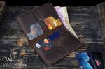 Размер данного портмоне соответствует размеру паспорта, поэтому его можно использовать в качестве своего рода чехла - обложки. Имеет четыре отделения для банковских карт / визиток или мелочи, а также два отделения под купюры или одно под любые другие бумаги / документы. Каждое отделение под карты вмещает до 3-х банковских карт.