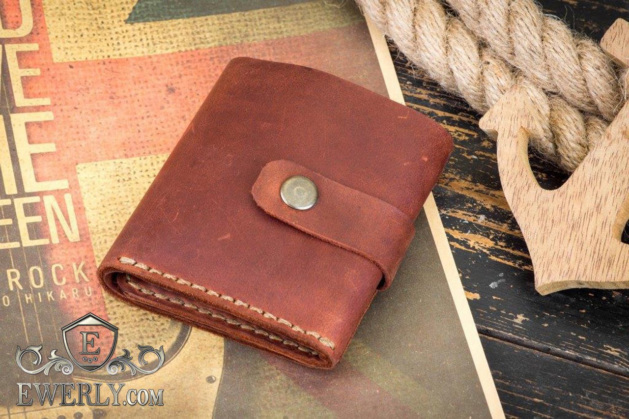 Мужской кошелёк - портмоне из натуральной кожи красного (коньячного) цвета как у главного персонажа в известном фильме "Невероятная жизнь Уолтера Митти".