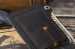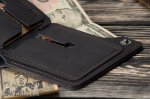 Прочный мужской бумажник из кожи с двумя отделами под банковские карты и визитки, а также один раздел для бумажных денег.