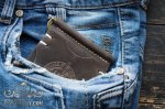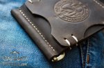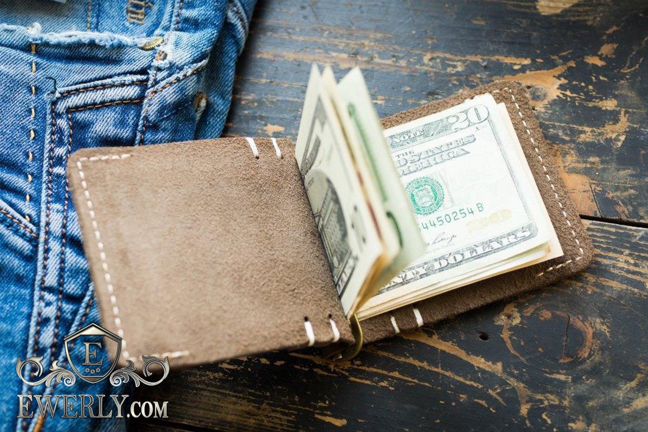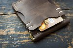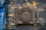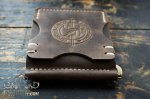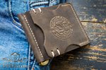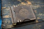 Практичный и удобный зажим для денег - ручная работа из натуральной кожи со вставками плетения вощеной нитью, выполнен для тех людей, кто не любит носить с собой пачки денег и кучу карт. Вмещает несколько бумажных купюр и имеет два отделения для банковских карт / визиток.