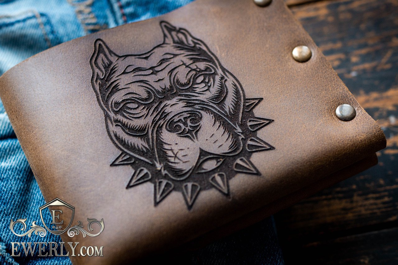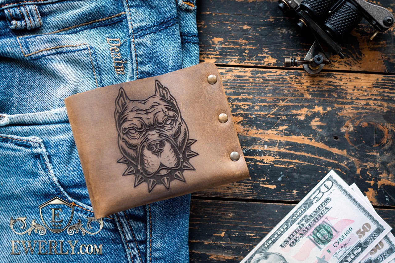 Мужской кошелёк с питбулем из натуральной кожи