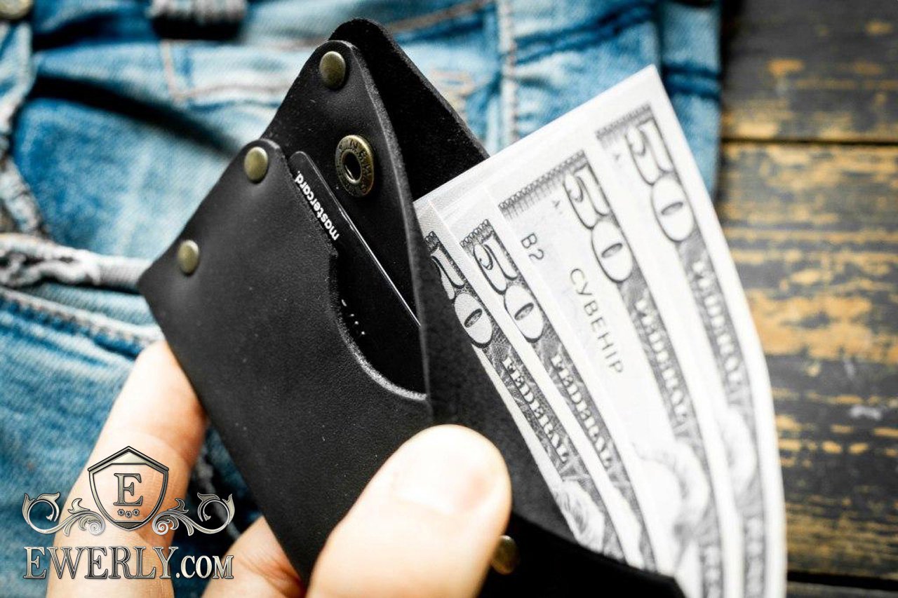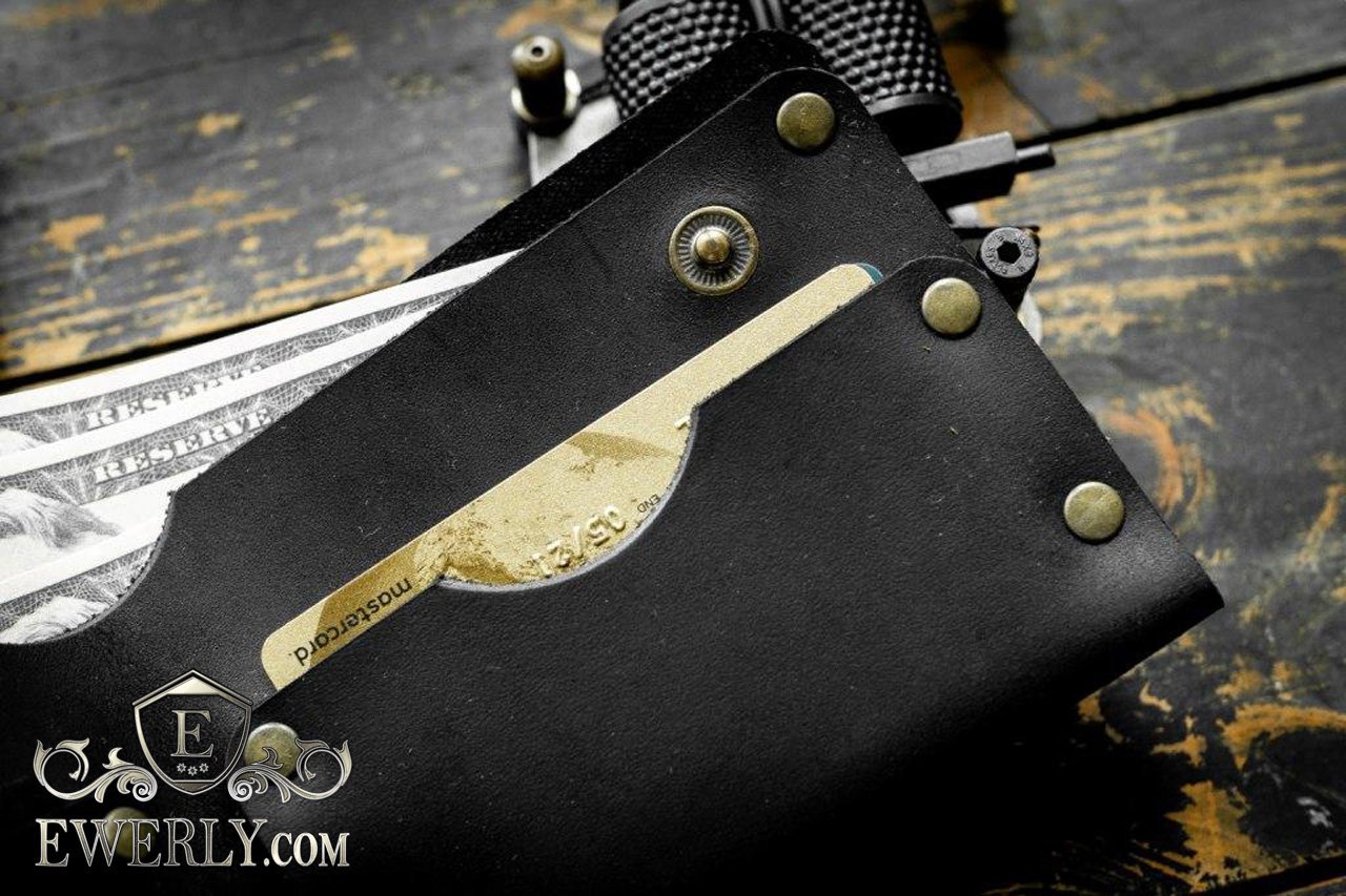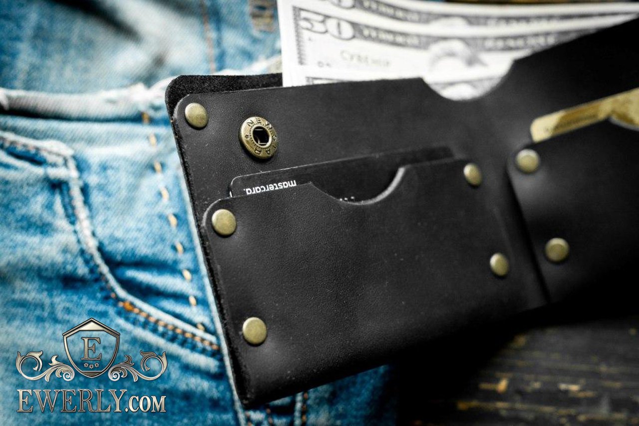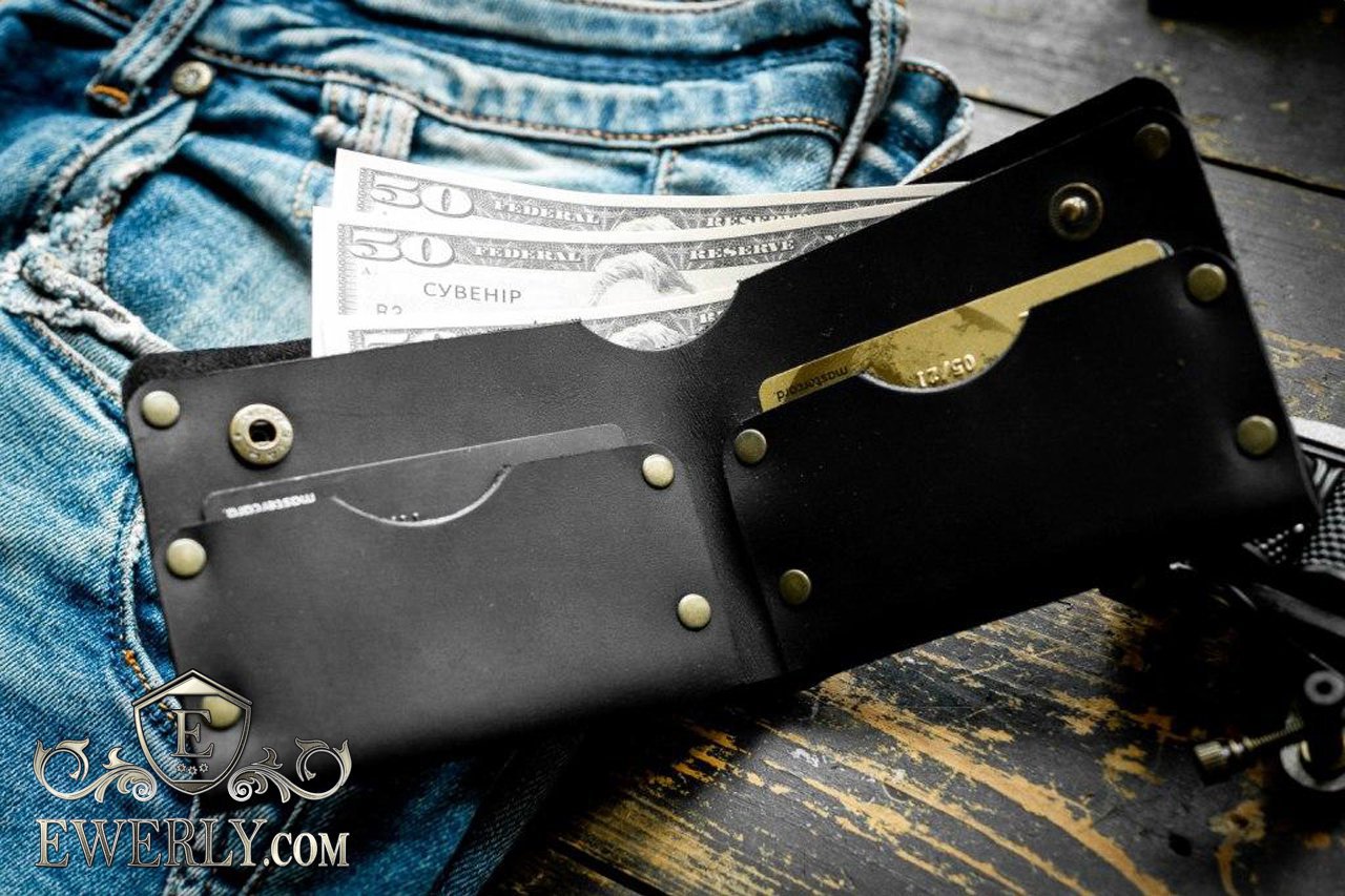 Мужской кошелёк из кожи черный с гравировкой 11090YZ