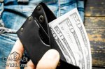 Бумажник имеет одно отделение под купюры всех номиналов и два отделения для кредитных карт / визиток. Всего вмещается 4-6 карт в зависимости от их толщины, закрывается кошелёк с помощью двух кнопк изнутри.
