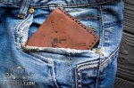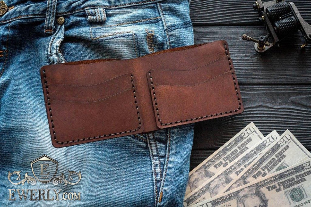 Бумажник имеет одно отделение под купюры всех номиналов и два отделения для банковских карт / визиток. Всего вмещается 4-6 карт в зависимости от их толщины, закрывается кошелёк с помощью двух кнопок изнутри.