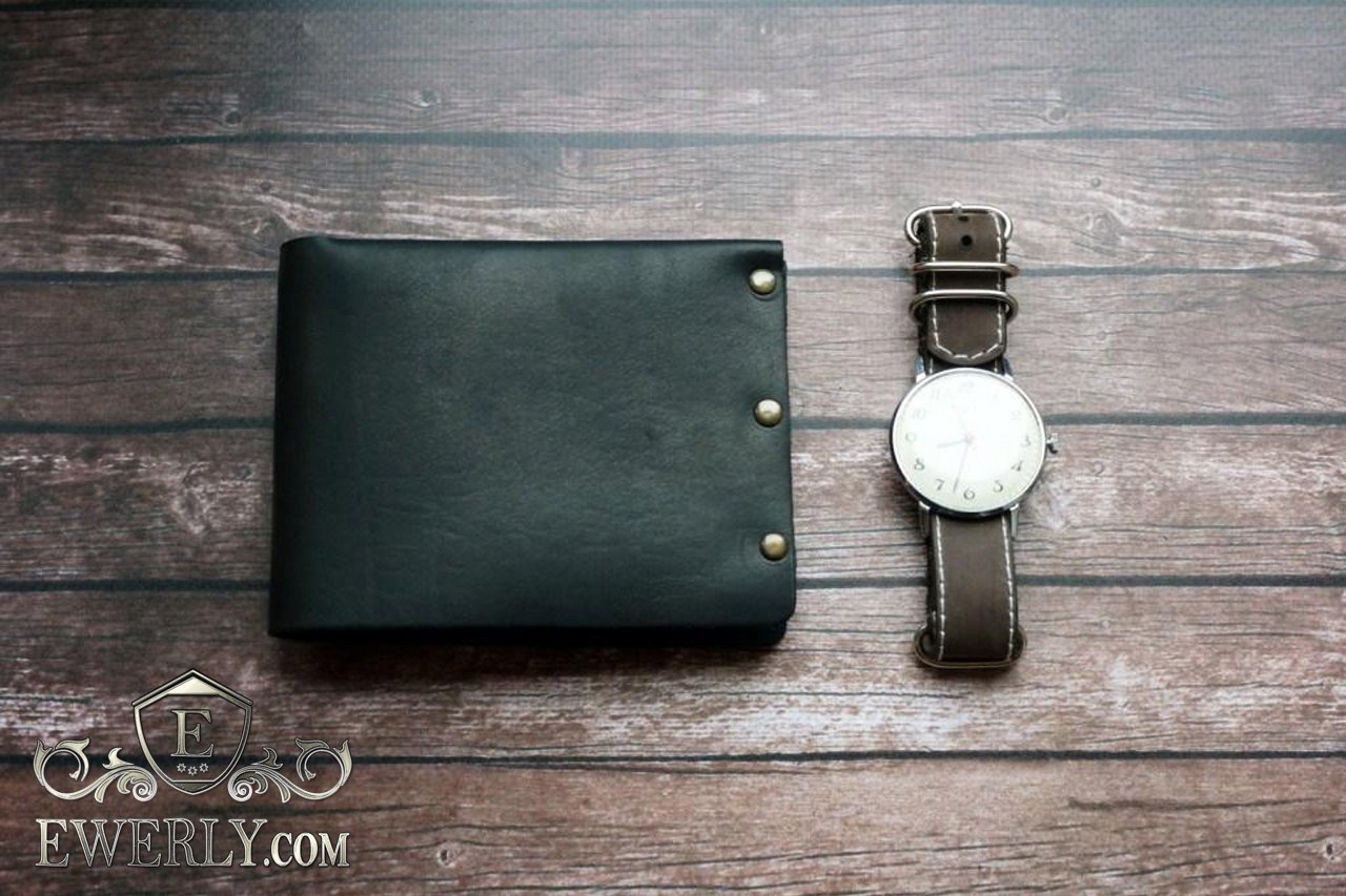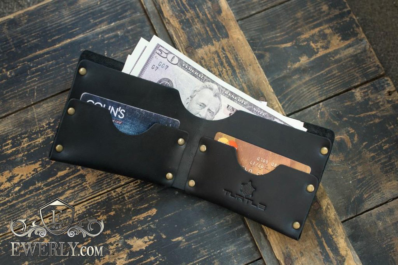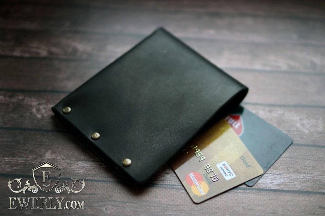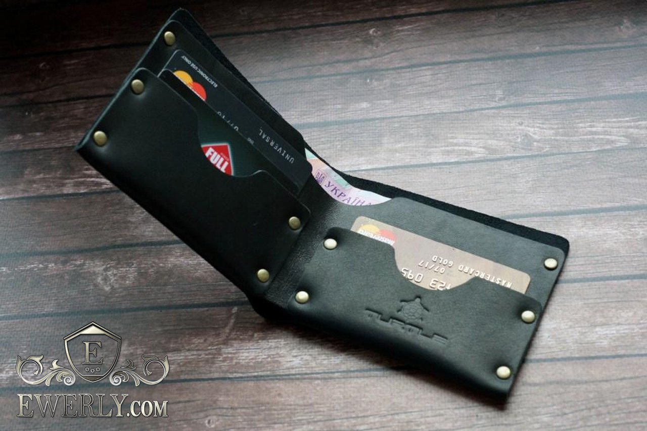 Мужской кошелёк из кожи чёрный (ручная работа) 11002LX