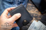 Зажим для купюр ручной работы кожаный чёрный 11024FM