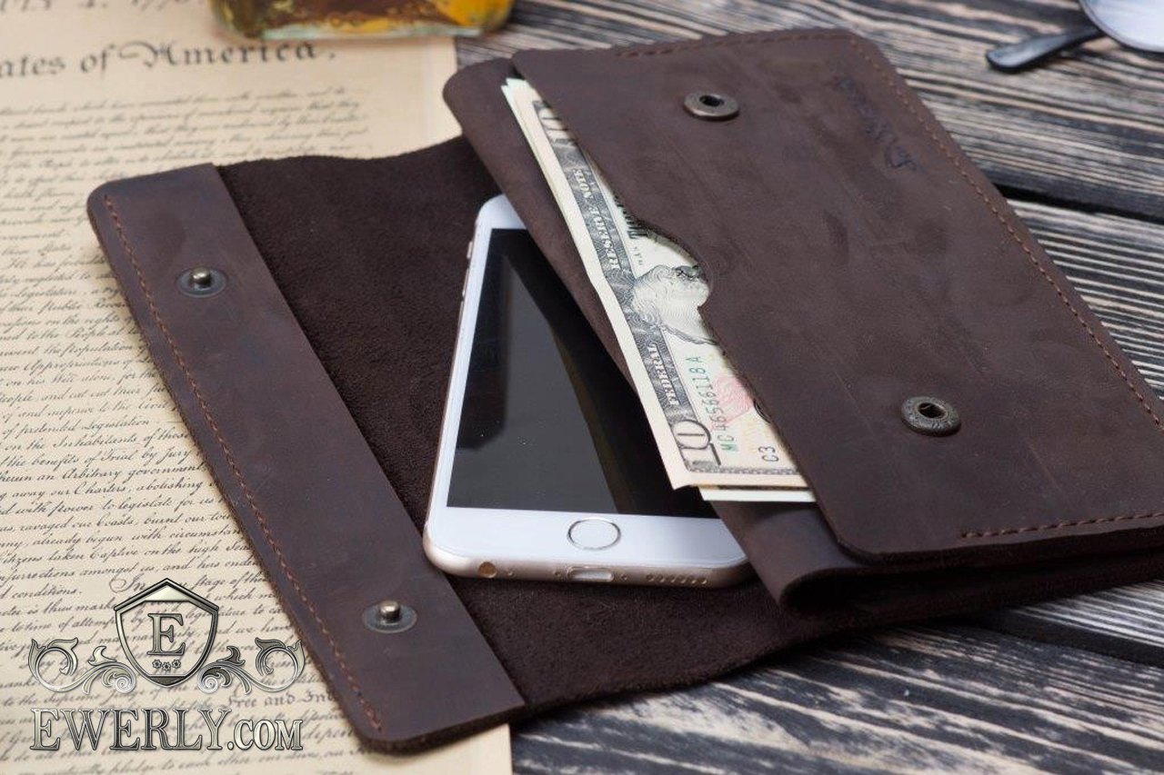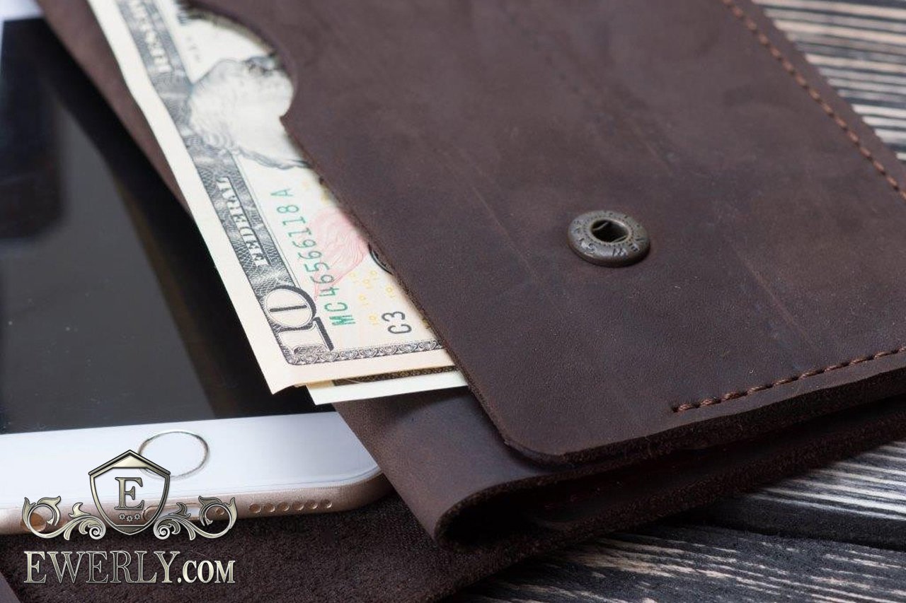 Мужское кожаное портмоне - клатч коричневый 11019DJ