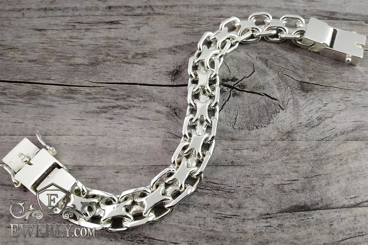 Серебряный браслет Фараон (двойной якорный) из серебра 925 пробы